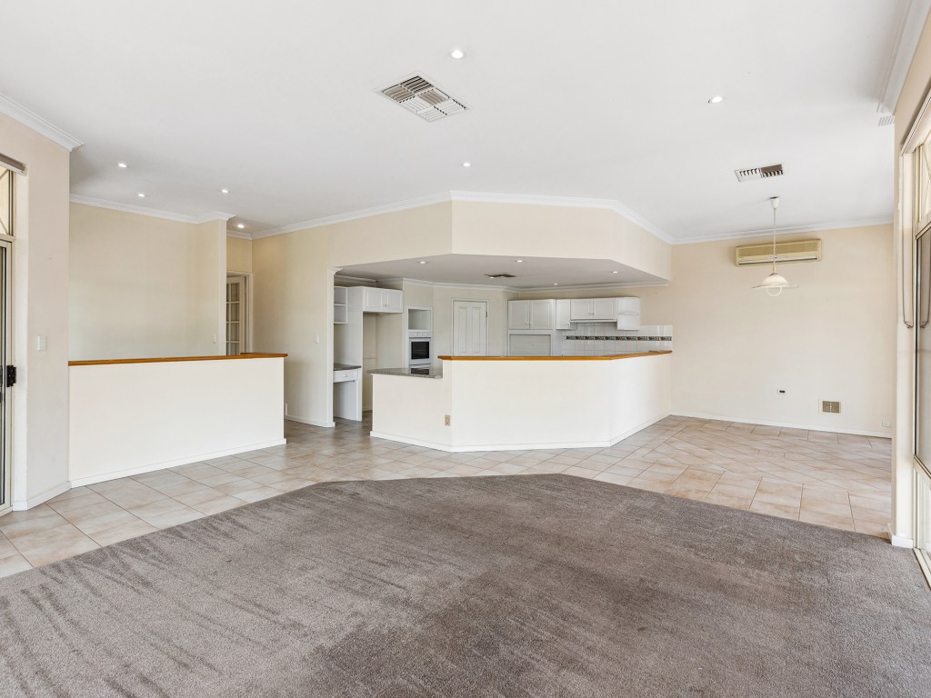 The open-plan family and meals area seamlessly integrates with the lounge and a discrete built-in bar, perfect for entertaining.